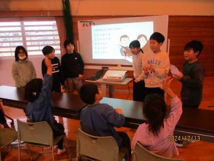 算数では足し算の仕方を丁寧に教え、みんな喜んで手を挙げていました。