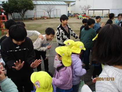 帰るときは手をつなぎ、微笑ましい様子で保育所までお見送りにいきました。別れる最後まで手を振ったり、話をしたりしていました。