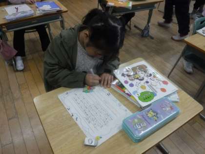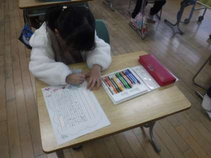 12月16日(月)1年生 お手紙 公開日 2024/12/16 更新日 2024/12/16 1年生 今学期いっぱいで本校を離任される先生がいらっしゃいます。1年教室では、その先生に「ありがとうございました」の気持ちを込めて、お手紙を書いていました。