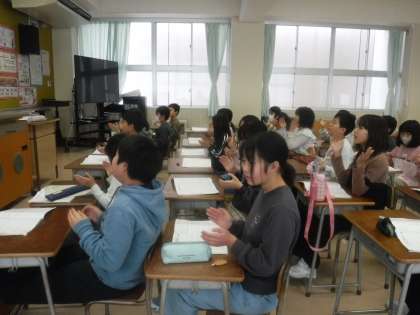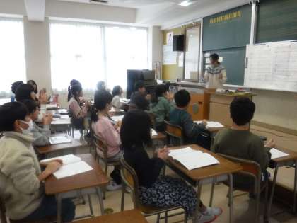 12月17日(火)5年生 音楽科 公開日 2024/12/17 更新日 2024/12/17 5年生 CDの演奏を聴きながら、みんなで手拍子をしてリズムを確認していました。手拍子だけでなく、リズムを口ずさみながら、みんなノリノリで音楽を楽しんでいました。