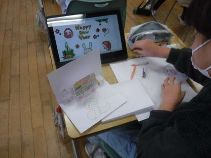 クリスマスやお正月に向けて、楽しいカードを作っていました。いろいろなイベントがある冬休みが楽しみですね。