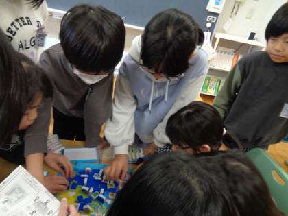 12月18日(水) 4年生 休み時間 公開日 2024/12/18 更新日 2024/12/18 4年生 教室に新しいゲームが増えました。富山の魚を覚えながら、ゲームのルールを確認していました。冬の寒い日もみんなで楽しく仲良く遊べますね。