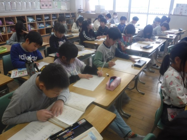 1月9日(木)3年生 国語科 公開日 2025/01/09 更新日 2025/01/09 3年生 漢字チャレンジテストの練習問題に真剣に取り組んでいました。分からない漢字は、教科書や漢字スキルを使って調べます。こうして粘り強く自力解決をすることで、力が高まっていきますね。