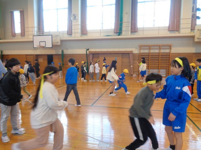 朝の時間に4年生が企画したなかよし班活動を行いました。