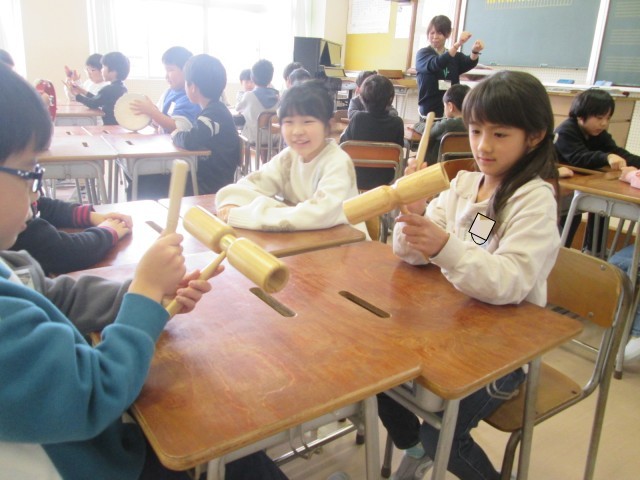 打楽器の曲を聴き、使われている楽器、その楽器の名前当てをしました。