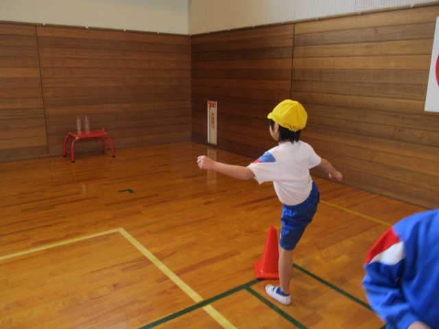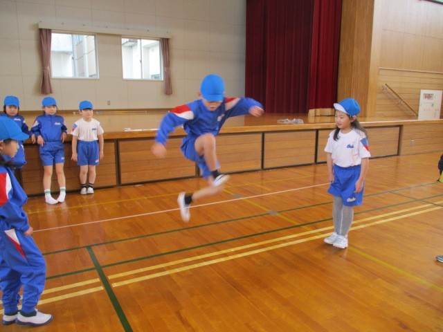 体育の学習では、ゴム跳び、かえるの足打ち、的当て等、様々な運動に取り組みました。