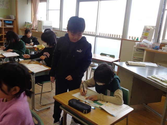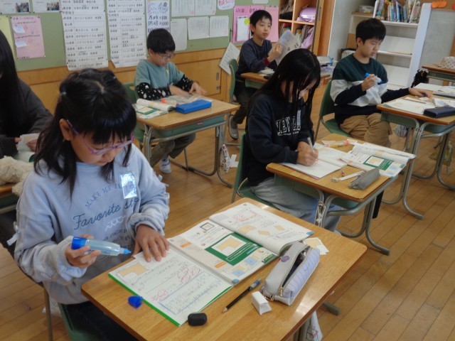 1月16日(木)4年生 算数科 公開日 2025/01/16 更新日 2025/01/16 4年生 長方形や正方形の面積の求め方の公式を使って、複雑な形の図形の面積を求めました。 友達の考えと自分の考えを比べて、いろいろなやり方があることを確かめていました。