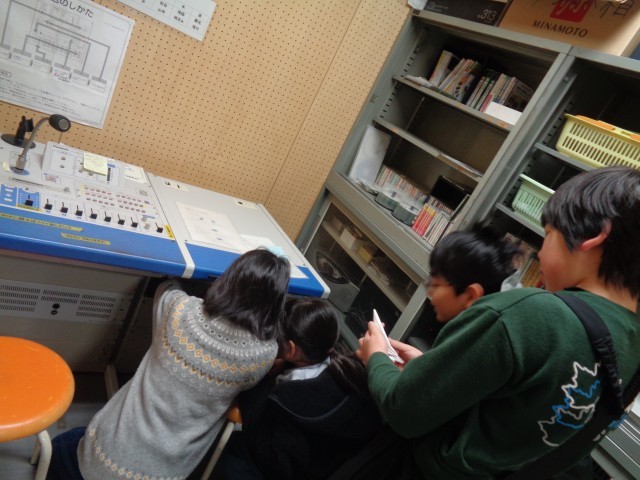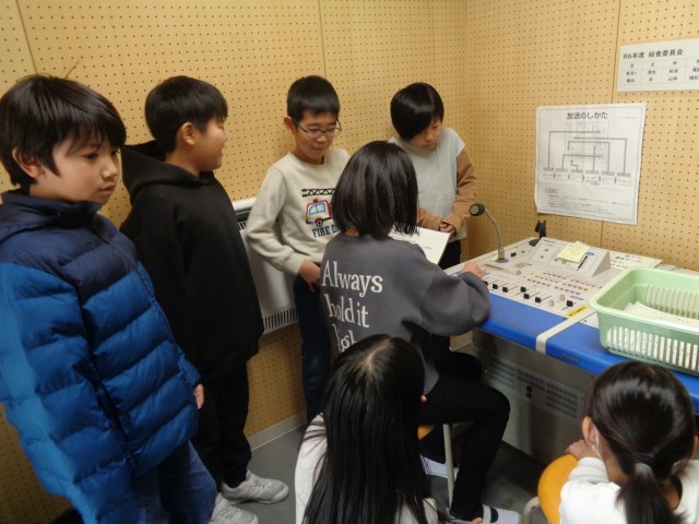 委員会の放送では、スキー学習に出発する5・6年生に見守られながら、一所懸命に伝えていました。