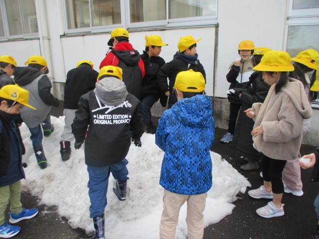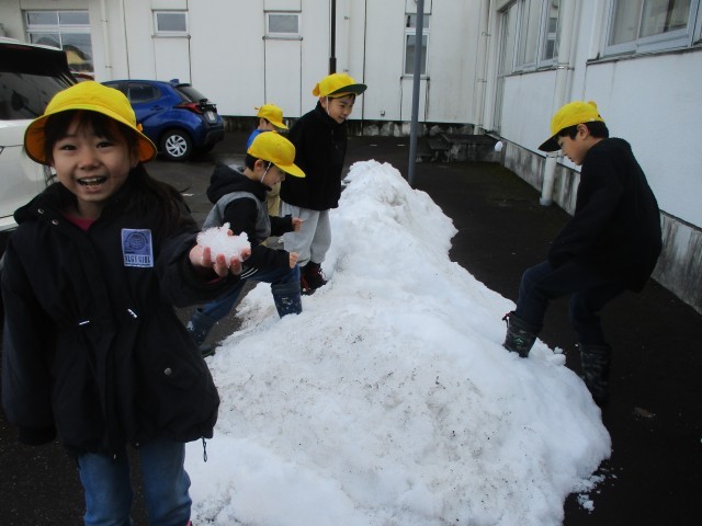「去年はグラウンドに雪がいっぱいあって遊んだね」