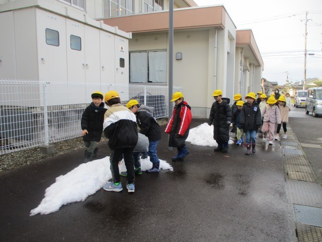 生活科「雪遊び」の学習をしようと約束していたのですが・・・よい天気が続き、雪がなくなり、冬のお散歩を行いました。