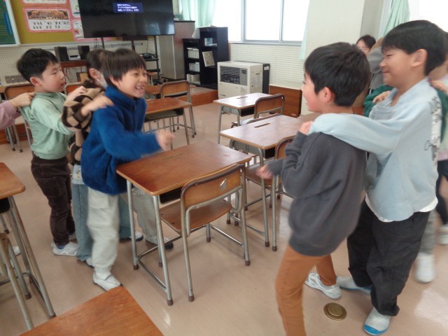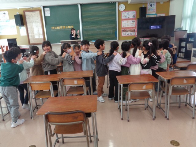 新しい音楽専科の先生との学習がスタートしています。貨物列車をしたり、絵描き歌や「おおなみこなみ」をしたりして、音楽を楽しみました。