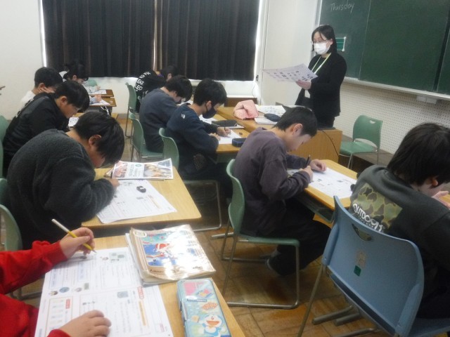 英語のテストをしていました。授業で学んだ文型を確かめながらがんばっていました。