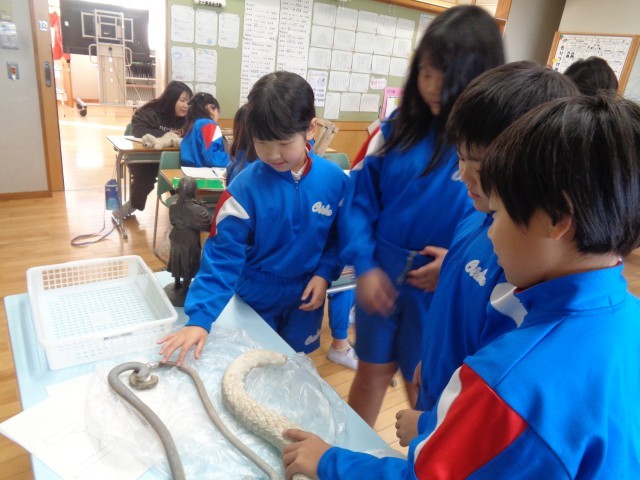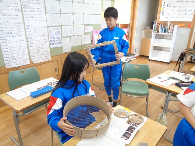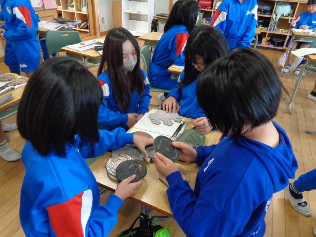 今日は、スペシャルゲストにご実家が「高岡銅器」の工場だった校長先生に来ていただき、実際に使っていた道具や銅器を見せてもらいながら、高岡銅器の鋳造の様子について学びました。子供たちは、実物を間近で見て、その細かさや重さ、大きさに驚いていました。とても貴重な学びになりましたね。