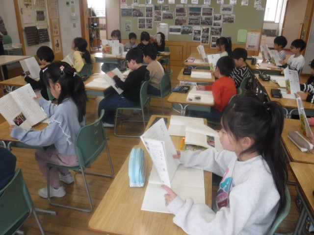 1月22日(水)2年生 国語科 公開日 2025/01/22 更新日 2025/01/22 2年生 「ロボット」という新しい教材文の学習です。音読をした後、おおよその内容を、大切な言葉と挿絵を手がかりにして確かめていました。