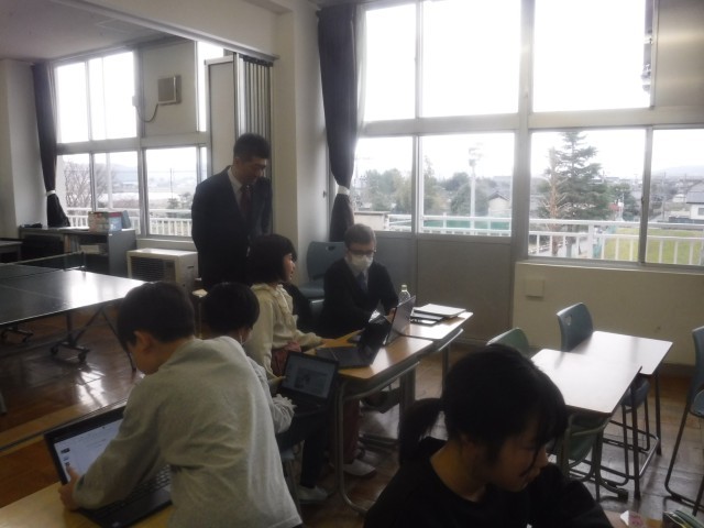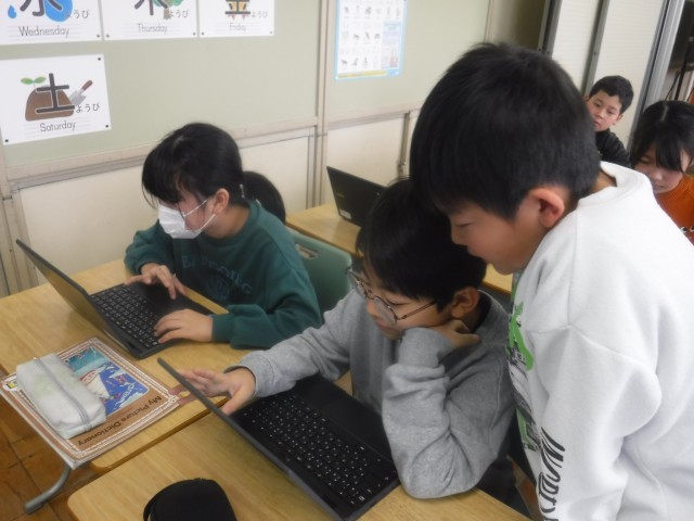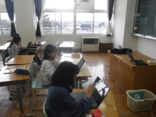 行ってみたい場所について調べ、英語で紹介するスライドを作っています。スライドが出来上がったら、ALTに英語で説明していました。