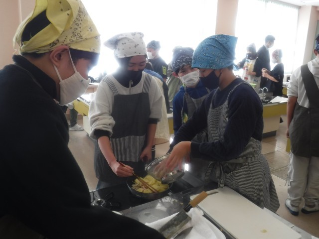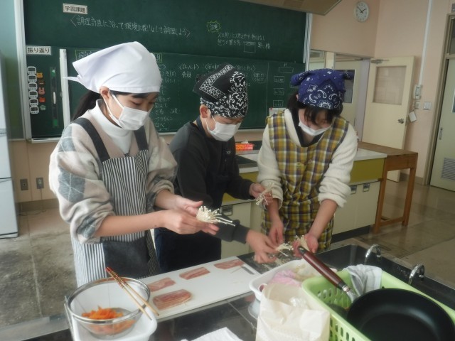 栄養バランスを考えたおかず作りにチャレンジしていました。それぞれの班で相談して決めたおかずを、協力して作っていました。手際のよい子供がたくさんいて、家で家事に参加してる様子がうかがえました。頼もしい6年生です。