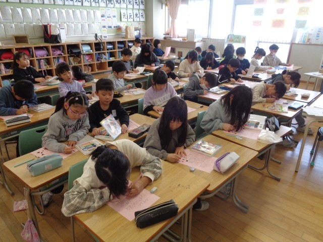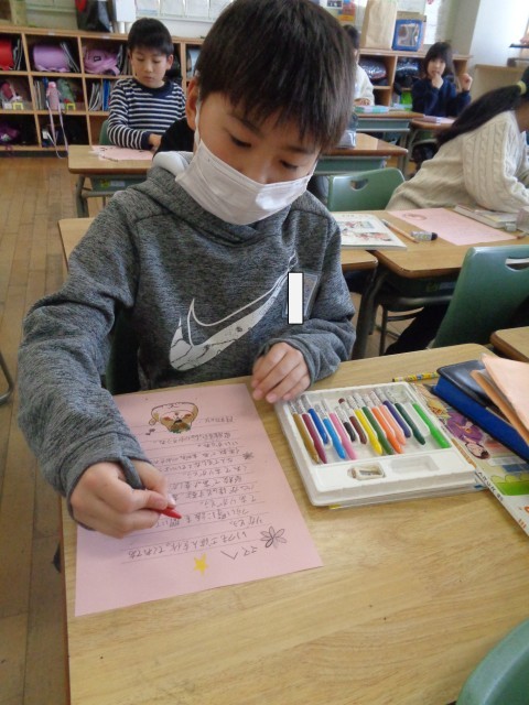 「家族のよさは何だろう」について考えました。「風邪をひいたとき、ものすごく心配してくれる」「相談をしたら、一緒に考えてくれる」等、自分が家族に大切に育ててもらっていることを改めて感じました。家族が自分のことを大切にしてくれているのに、自分はわがままを言ったり手伝わなかったりしているなと思った子供たち。授業の終わりには、自分も家族を大切に思っていることを伝えようと手紙を書きました。