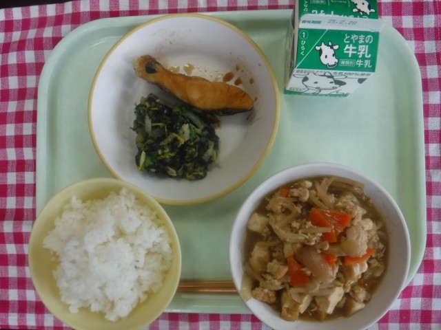 2月21日(金)今日の給食 公開日 2025/02/21 更新日 2025/02/21 本日の給食 今日の給食の献立は、ごはん、牛乳、揚げ魚(ホキ)のレモン味、磯和え、厚揚げの中華煮込み でした。 揚げ魚のレモン味は、カラッと揚がったホキにレモン風味の味付けがしてあり、さわやかな味わいでした。厚揚げの中華煮込みは、味がしっかり染みており、ご飯が進むお味でした。