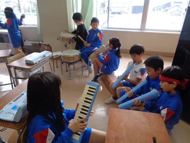卒業を祝う会に向けて練習をしています。