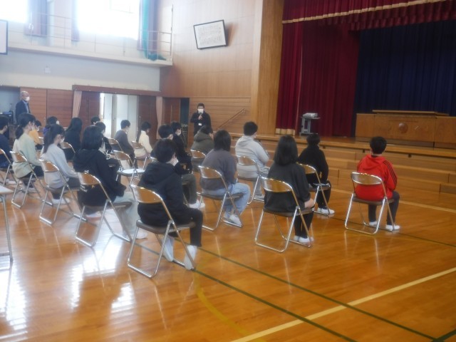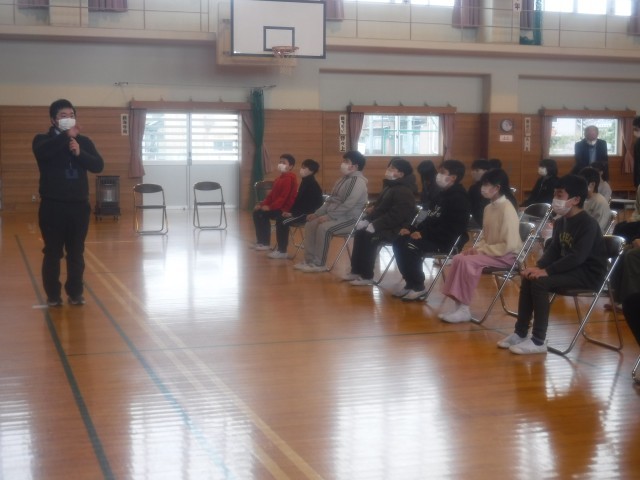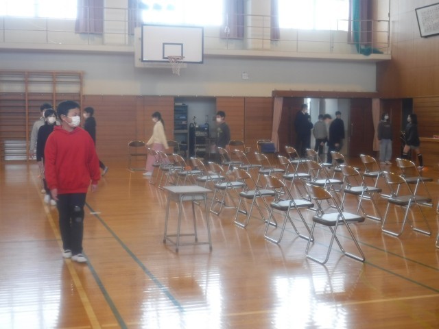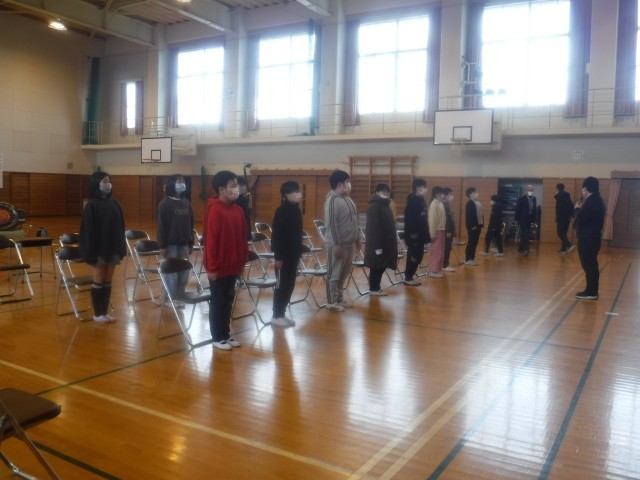 6年生は、体育館での卒業式練習を始めました。式に臨む心構えを確認したり、入退場等の動きをやってみたりしました。卒業式まで、あと10日です。