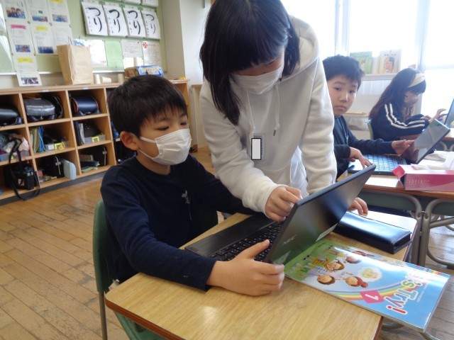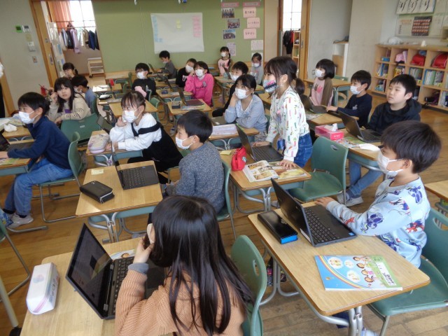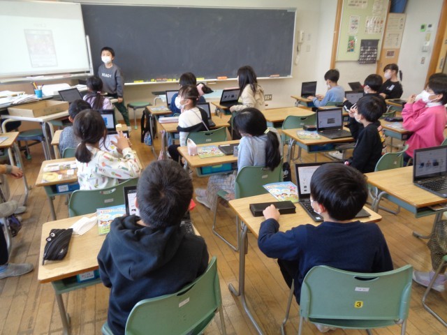 「Who am I ?」の学習では、自分の家族や好きな○○を紹介するスライドをつくっています。