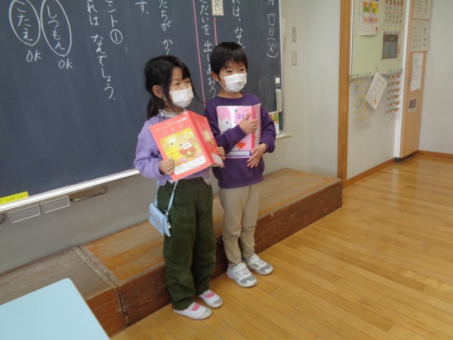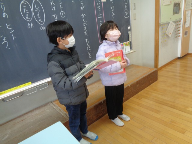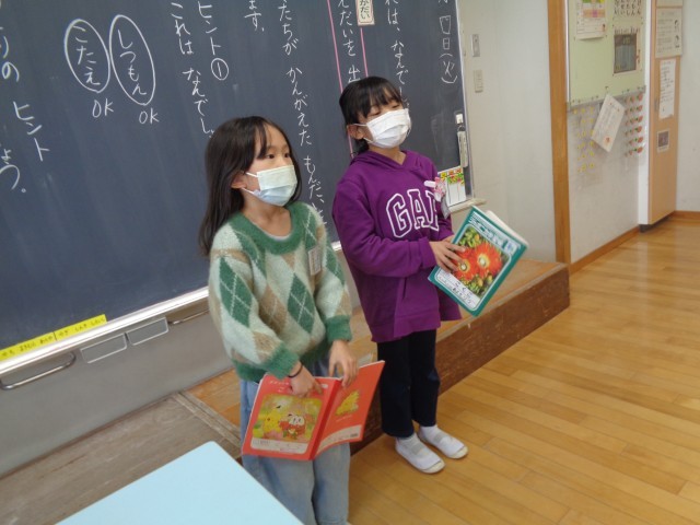 国語科「これはなんでしょう」では、ペアで考えた問題を出し合いました。問題に対して積極的に質問し、答えを考えていました。