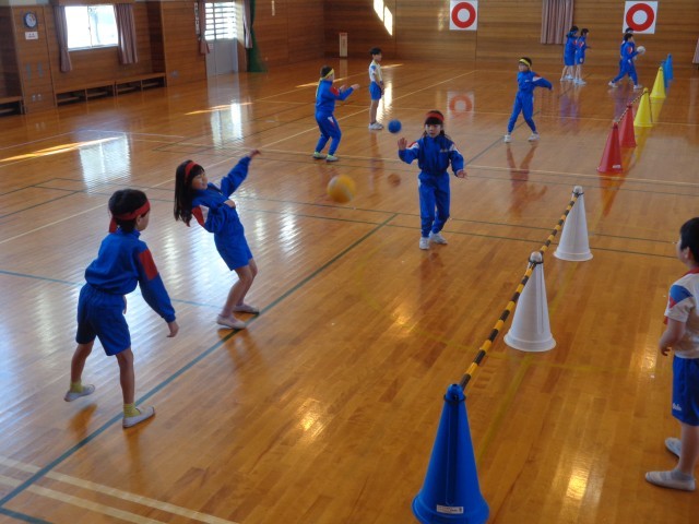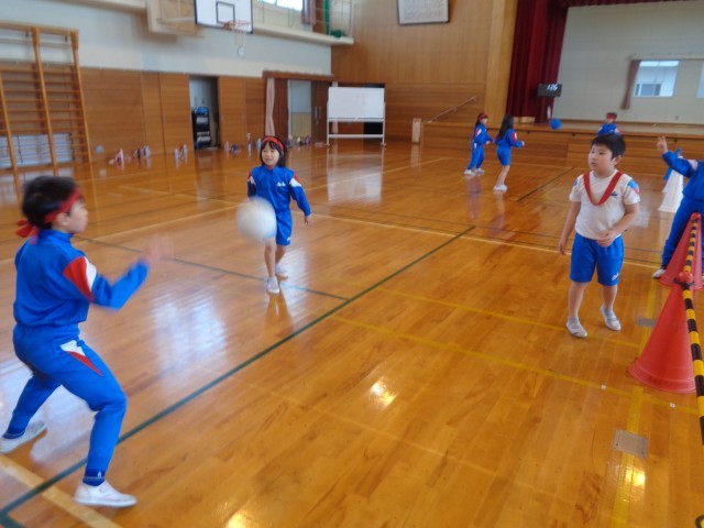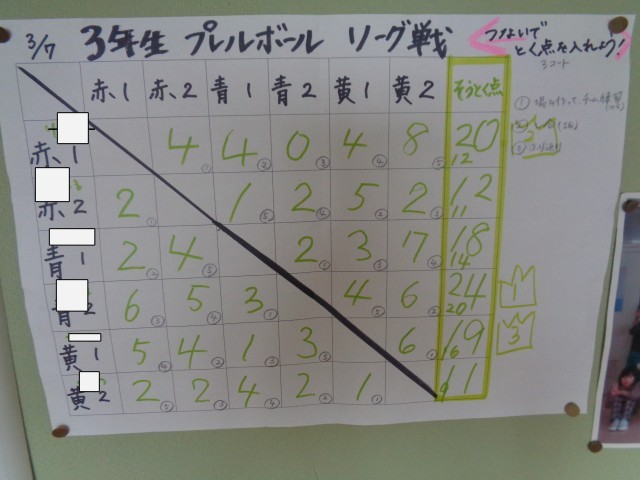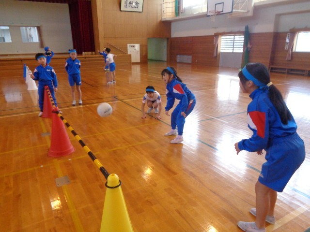 プレルボールの学習では、3年生でリーグ戦を行いました。チームで作戦を立てており、パスの仕方が上達していました。