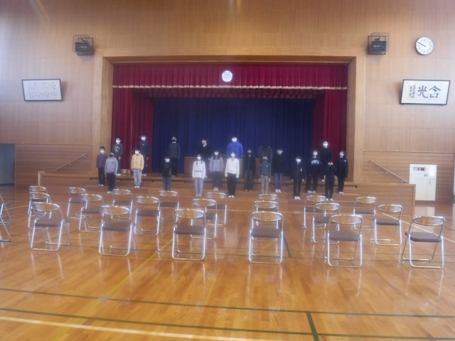 ひな壇で、卒業式の呼びかけや歌の練習をしていました。卒業式まで、あと1週間です。