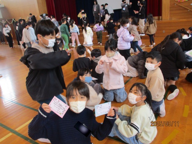また、他の学年の出し物にも「みんなの気持ちが詰まっていたね」「3年生がかっこよかった」「アイディアがさすがだった」と振り返っていました。6年生からのメッセージカードには一人一人に向けた言葉もあり、どの子も大喜びでした。