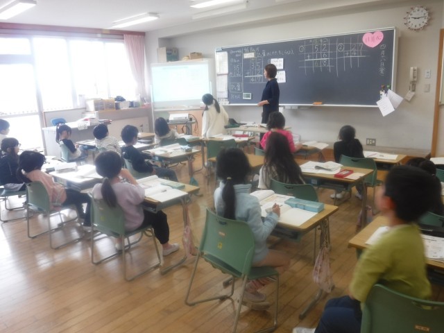 算数の時間の様子です。ノートに筆算を丁寧に書いていました。