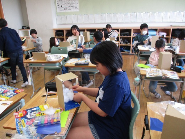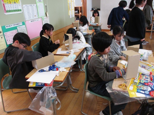 今日の図工ではミラクルミラーワールドをつくりました。鏡の特性を生かしていろいろなアイディアが見られました。完成が楽しみです。