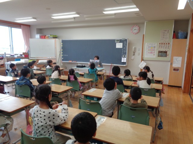 読み聞かせボランティアの方が用意してくださった本の読み聞かせを興味津々な様子で聞いていました。