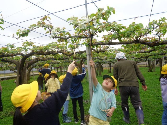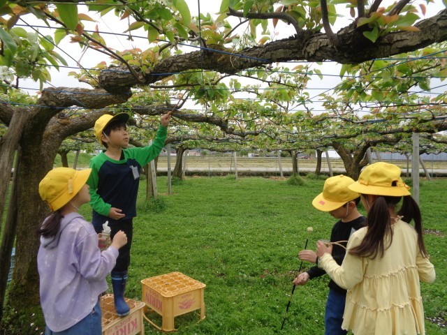 3年生は、総合「かがやけ!老田のすてき!」の学習で、梨の交配体験をさせていただきました。交配の意味や方法などを丁寧に教えていただき、「おいしくなあれ」と心を込めて交配の作業を行いました。体験を通して、梨作りの大変さにも気が付いた子供たち。農家の方の苦労や工夫があってこそ、あまくておいしい梨になると考えていました。