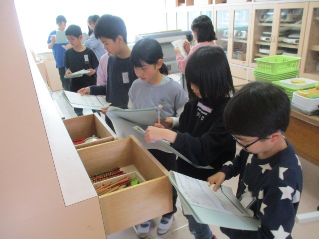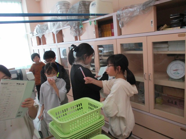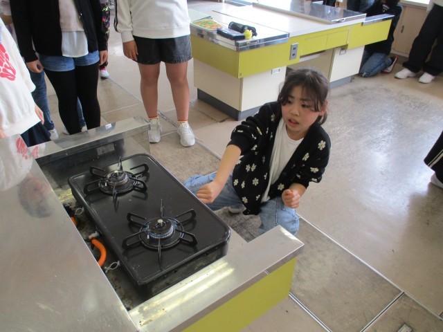 今日は家庭科室に行き、ガスコンロの使い方を学んだり、家庭科準備室を探検して使用する器具の場所を確かめたりしました。高学年になって新しく始まった家庭科をみんな楽しみにしているようです。