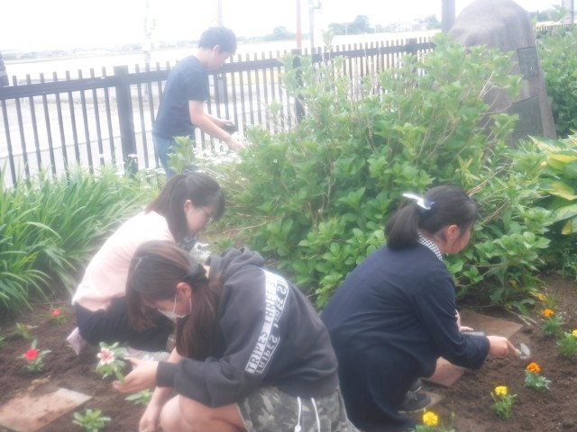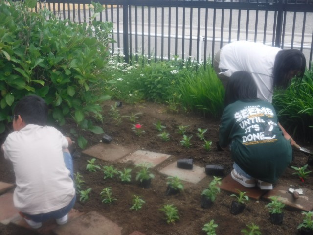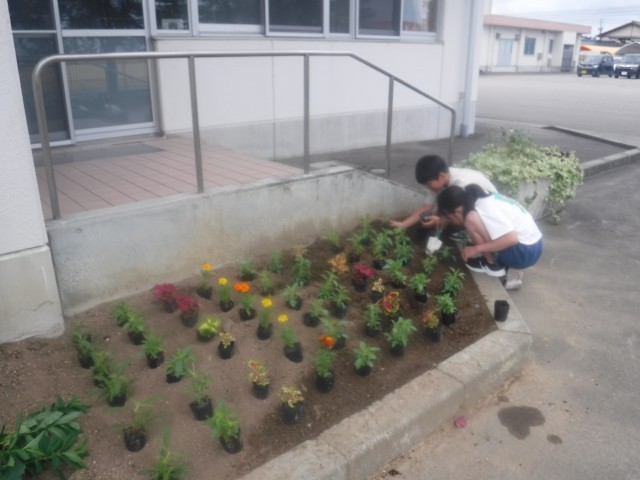 環境・保健委員会の子供たちが、花壇に花の苗を植えました。