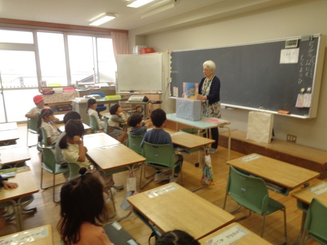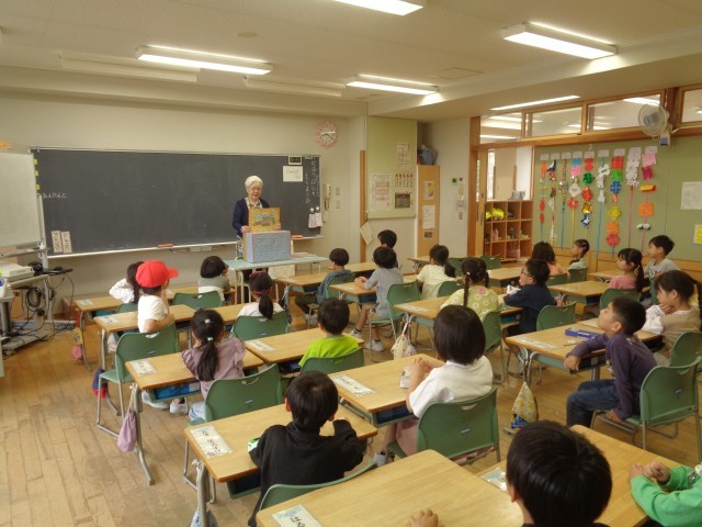 22日(木)には、読み聞かせボランティアの方による読み聞かせの時間がありました。2つの紙芝居を楽しく聞いていました。