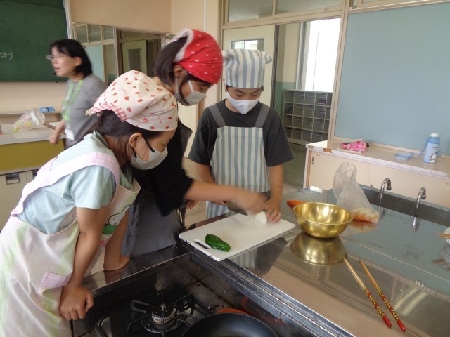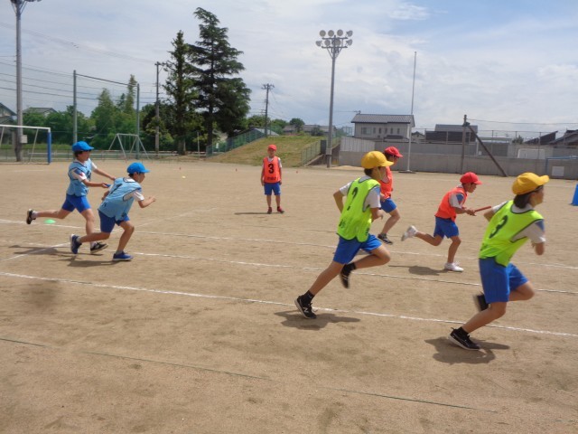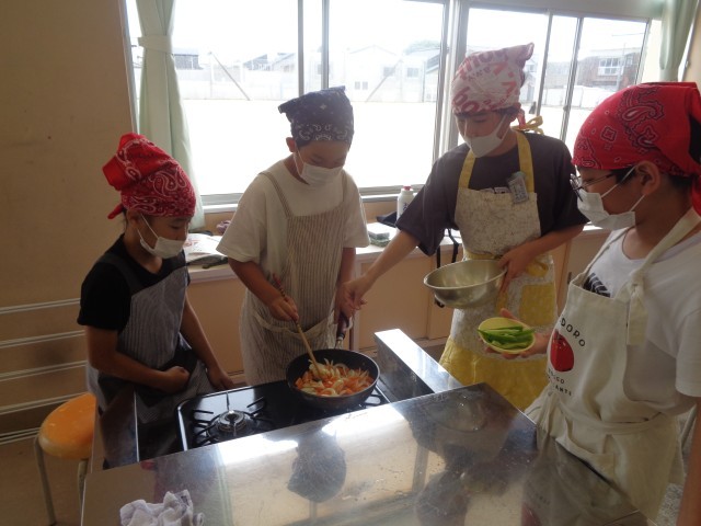 家庭科の学習では栄養バランスを考えて、野菜炒めを作りました。野菜ごとに切り方を変え、協力して野菜炒めを作りました。体育科の学習では、バトンリレーを行いました。バトンを渡してくれる仲間と息を合わせて、一秒でもタイムを縮めようと練習に励みました。