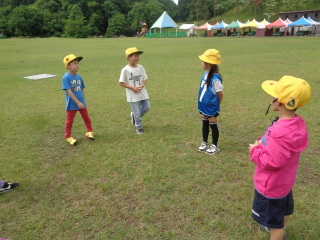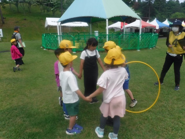最初のピクニック広場では、みんなでゲームを行い、お互いの顔や名前を伝え合いました。