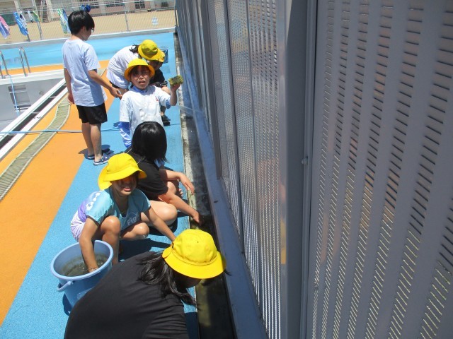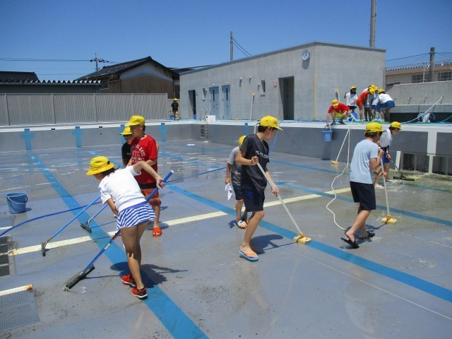 プール清掃を行いました。5、6年生が最後まで一生懸命掃除をし、プールはピカピカになりました。老田っ子みんなが来週から気持ちよくプールに入ることができそうです。5、6年生さん、ありがとう!!