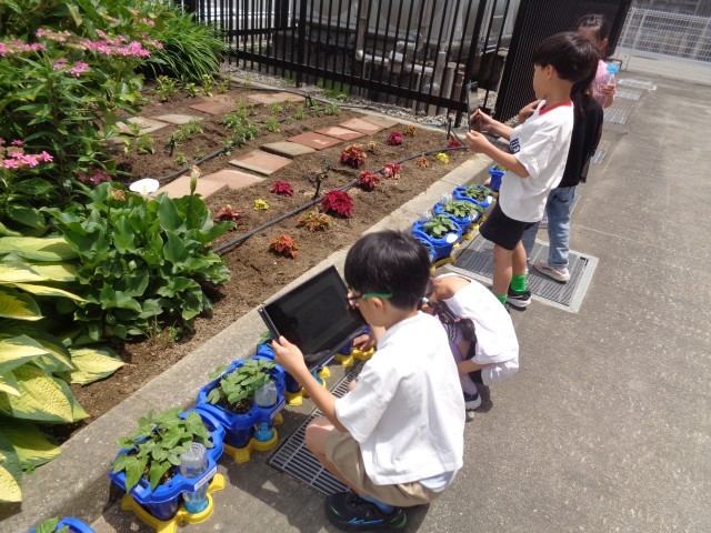 「本葉が出てきた」「さわるとふわふわだ」など、前と比べて気付いたことを話している言葉が聞こえてきます。