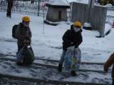1年生のチューリップの鉢が雪に埋もれました。 鉢は埋もれましたが、誰のかが分...