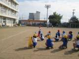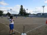 ベースボール型の体育の学習で、ティーボールをしています。試合に近い形式で打撃と...