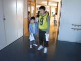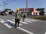 横断歩道を渡るときには、ハンドサインで意志を伝えて渡ります。 班長さんがお手...