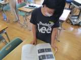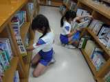 休み時間に図書室に来て、本を選んでいる子供たちがいます。 一冊一冊手に取って...
