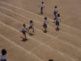 3年生、4年生は、体育の時間に50メートルを走りました。 ゴールに向かって力...