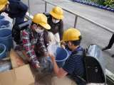 5年生は、一人一人がバケツでイネを育てようと、土作りを学習しています。登校した...