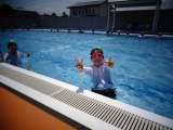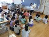 今朝、児童玄関前のミストシャワーを開始しました。 登校した子供たちは、ミスト...