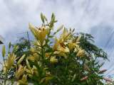 今朝、校門の傍の花壇のユリが満開になりました。 大空に向かって咲くユリは、夢...