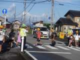 秋の全国交通安全運動8日目の登校の様子です。 横断歩道では、ハンドサインを示...