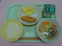 今日の献立は・ごはん・牛乳・白身魚(タラ)のフライ・チーズポテト・ABCマカロニ...